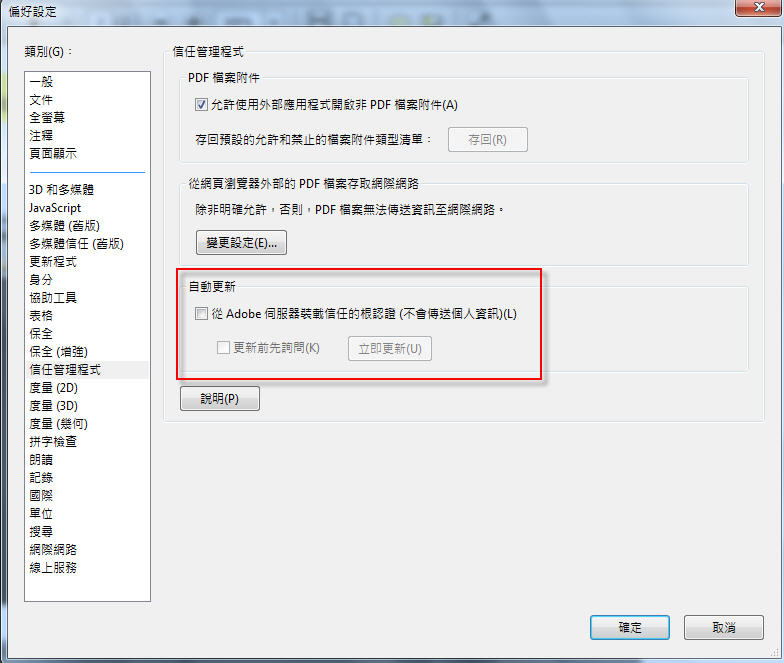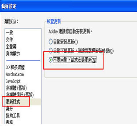 6.若有使用ISO模組,請關閉Acorbat Reader 自動更新: