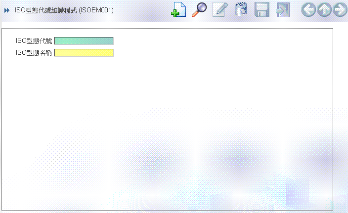 首 頁 --> ISO文件管理 --> 一般資料維護 --> ISO型態代號維護程式