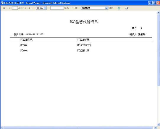 首 頁 --> ISO文件管理 --> ISO文管報表 --> ISO型態代號報表
