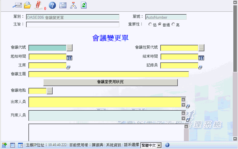 首 頁 --> OAS 電子表單清單 --> 會議變更通知單