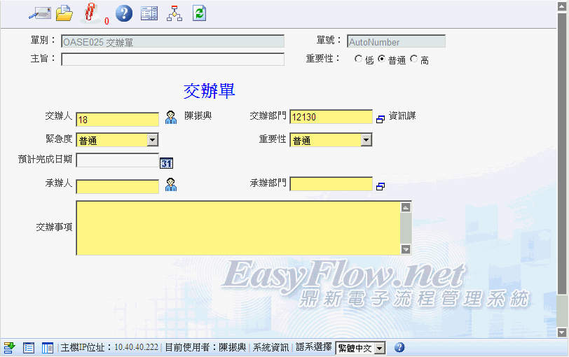 首 頁 --> OAS 電子表單清單 --> 交辦單
