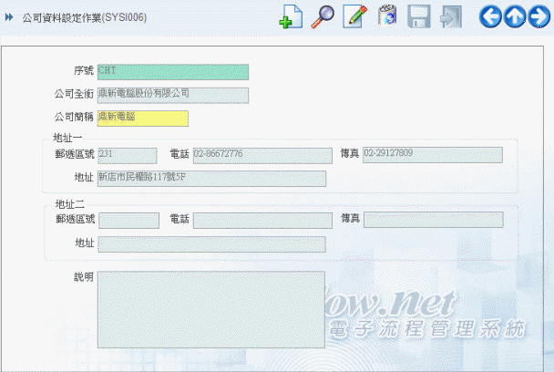 公司資料設定作業(SYSI006)