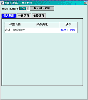 選擇您要篩選的欄位,輸入條件後,按下[加入]按鈕將您所輸入的條件加入條件式中。